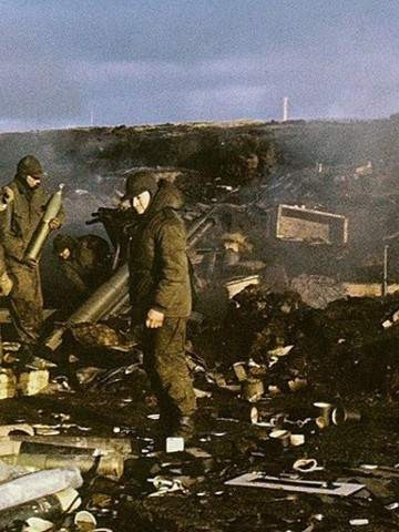 Argentine artillerymen desperately hurl back shot for shot, when someone turns on the radio to see if people at home are thinking of them. The news forgets them, saying the biggest worry to Argentina is losing 1-0 to Belgium in the World Cup.