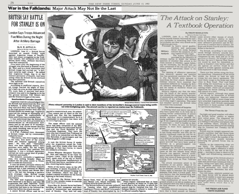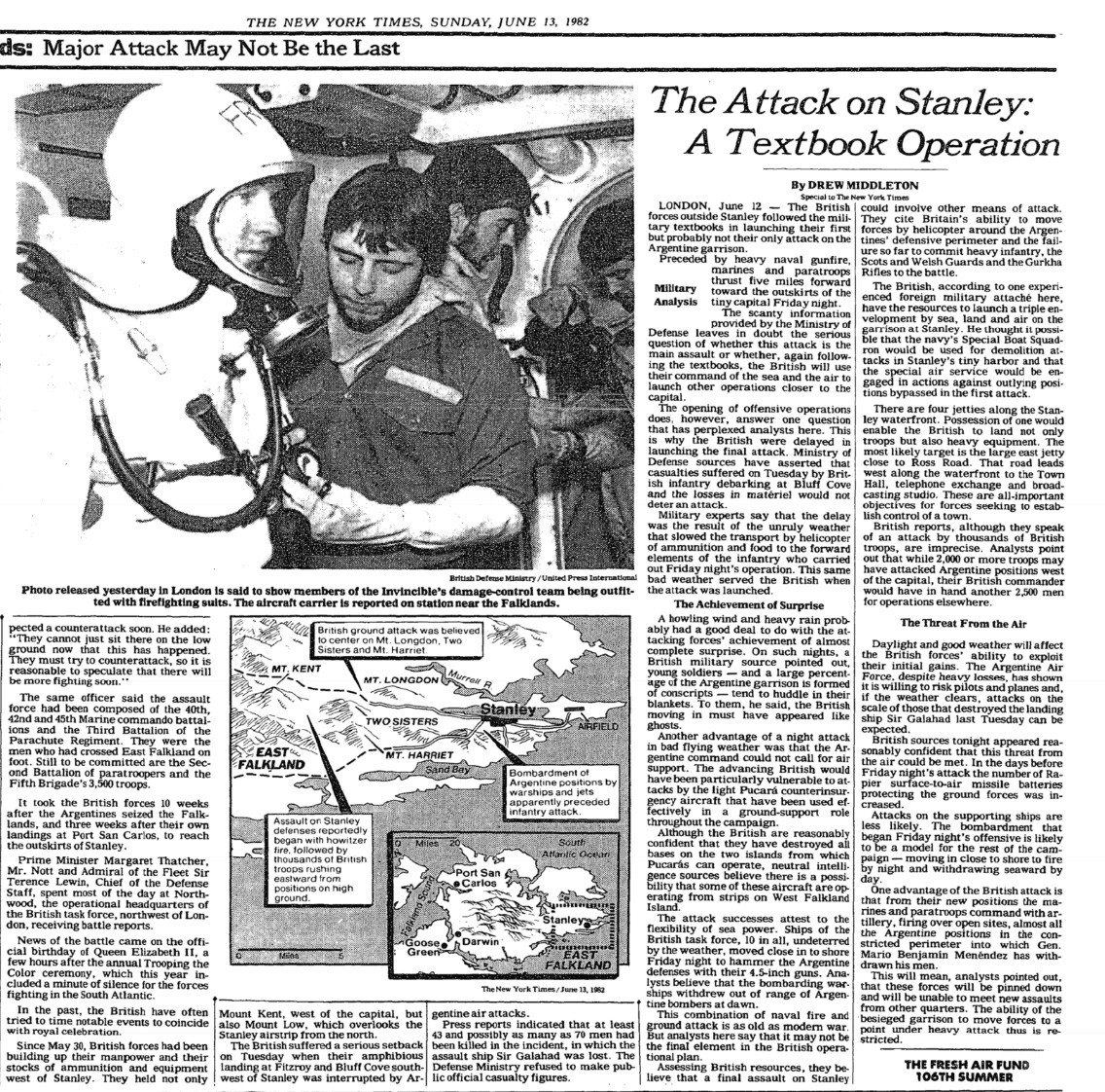 The New York Times calls the British attack on Stanley a "Textbook Operation"