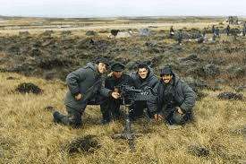 In 2 Para's assault position on Wireless Ridge, it is the courage of the mortar platoon that is remembered. If mortar fire is to be pinpoint accurate, the mortars base plate has to be securely anchored.