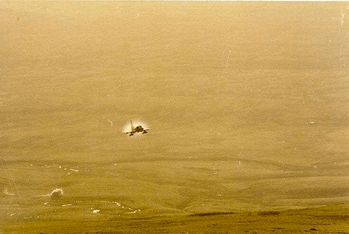 At 11am HMS Cardiff detected a raid approaching fifty miles to the south west of San Carlos Water. The CAP was vectored but nothing was detected. The raid somehow slipped through the net and at 11.20 seven Skyhawks attacked Mount Kent.