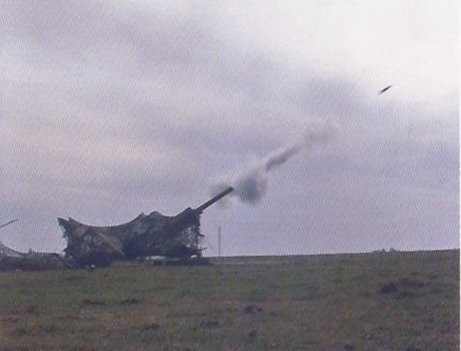 Later a pair of Harrier GR3s flew direct from Hermes to deliver laser guided Paveway bombs on the Argentine artillery in the Moody Brook area. One bomb scored a direct hit on a 155mm gun.