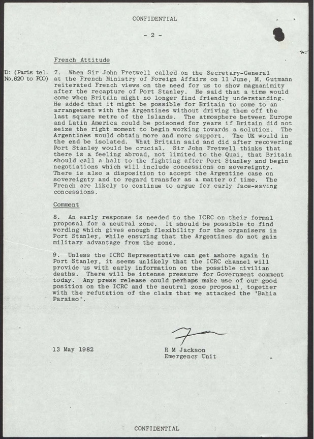 Notably the French were keen for "the British to show magnanimity after the recapture of Port Stanley."