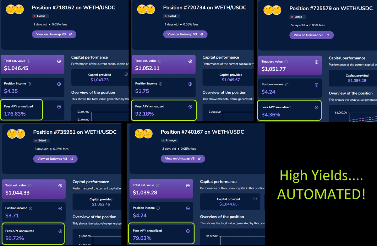 How can YOU earn 176% APR on $ETH & $USDC in REAL Yield while managing your LP's efficiently? No incentives, no fugazi, but real yield. No shitcoin to sell before it plummets in value, no lockups, no BS. See my results earning high yield with minimal Impermanent Loss Thread 👇