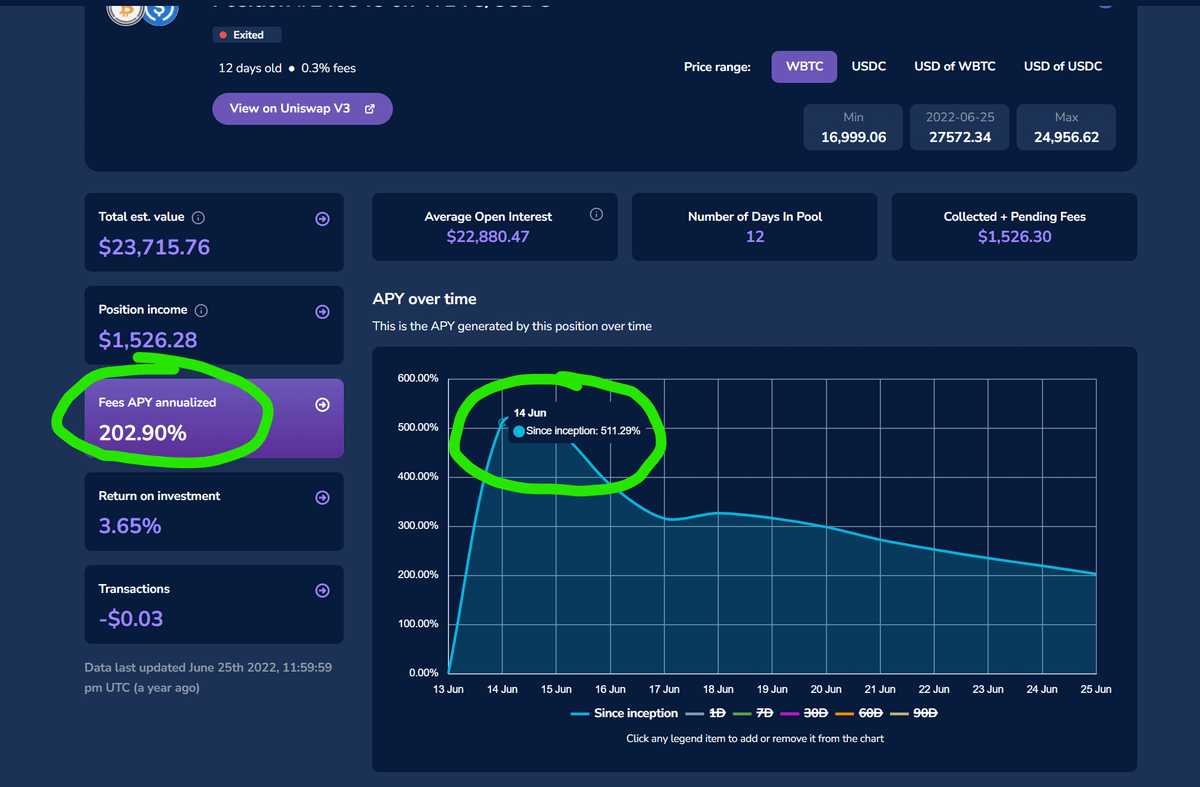 $BTC $USDC pool. Range $16999-24956. - Avg yield over 12 days - 203% - Highest earning yield in a day - 511% APR - Today? You'd be lucky to see 40% with this range.