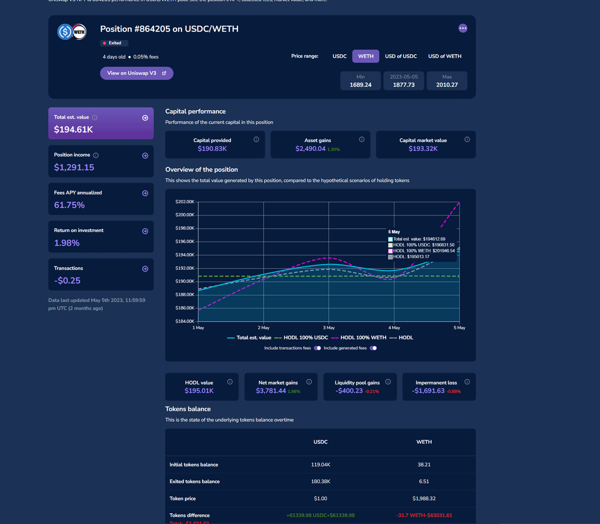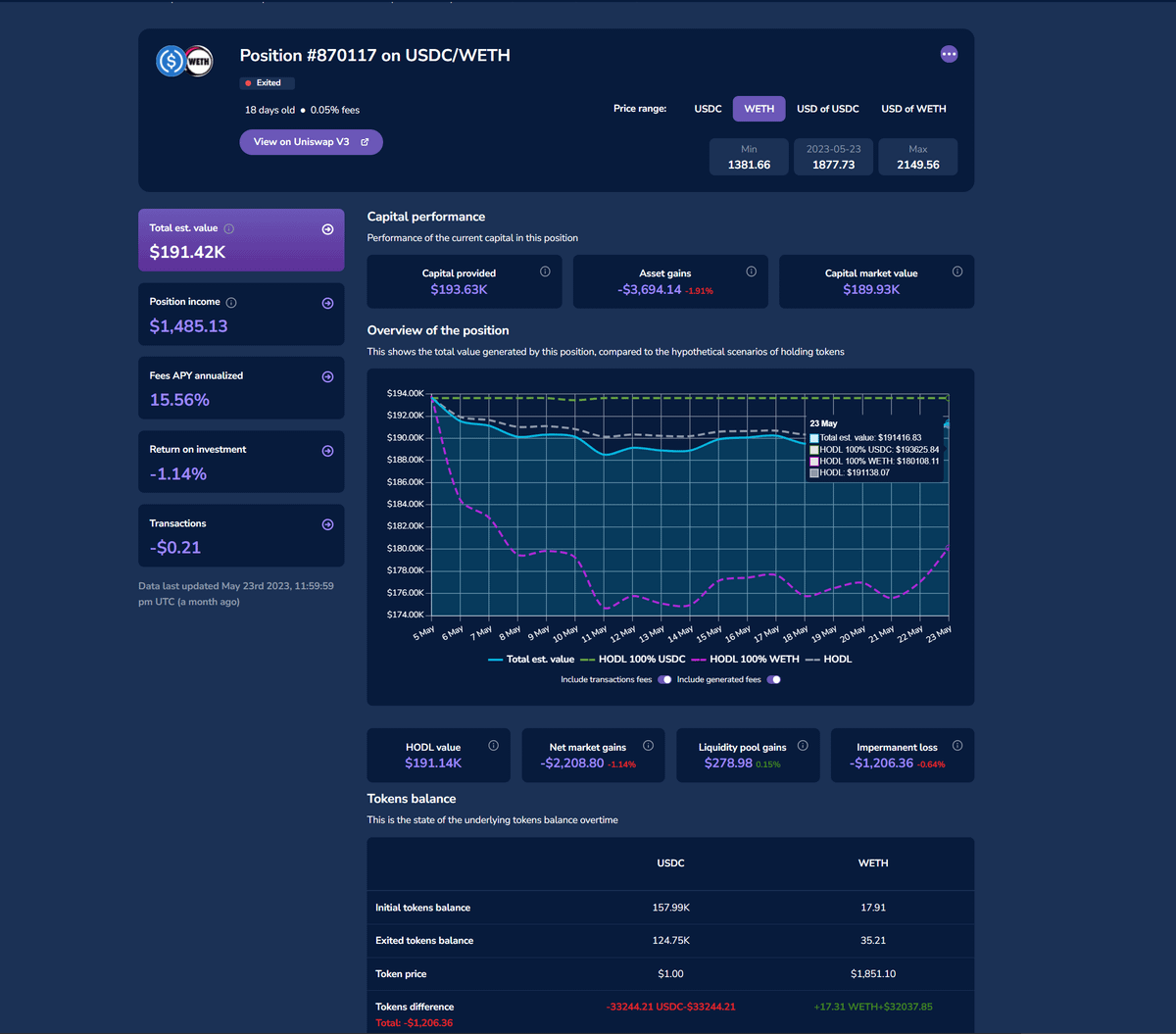 HODLer's performance? - $8,218 PROFIT - ZERO YIELD - ZERO IMPERMANENT GAINZZZ Starting Price: $1761 Current Price: $1899 Value: $1761 - $191,410 $1899 - $199,628.60 Max Drawdown at $1626 $ETH price: - $8,125.91 LOSS
