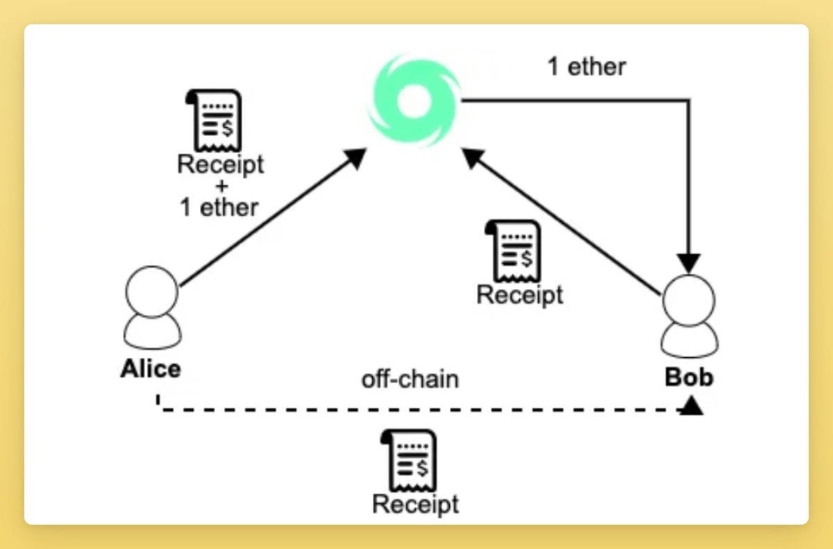 👉🏻 A receipt (commitment), generated from a secret and nullifierHash, each receipt can only be used once.