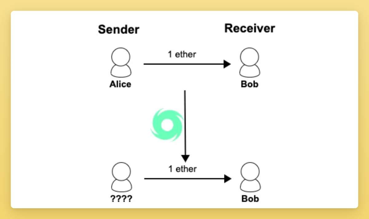 Tornado Cash's goal is to hide the identity of the sender in a transaction. Even if the transaction is recorded on the blockchain, the sender's identity remains untraceable.