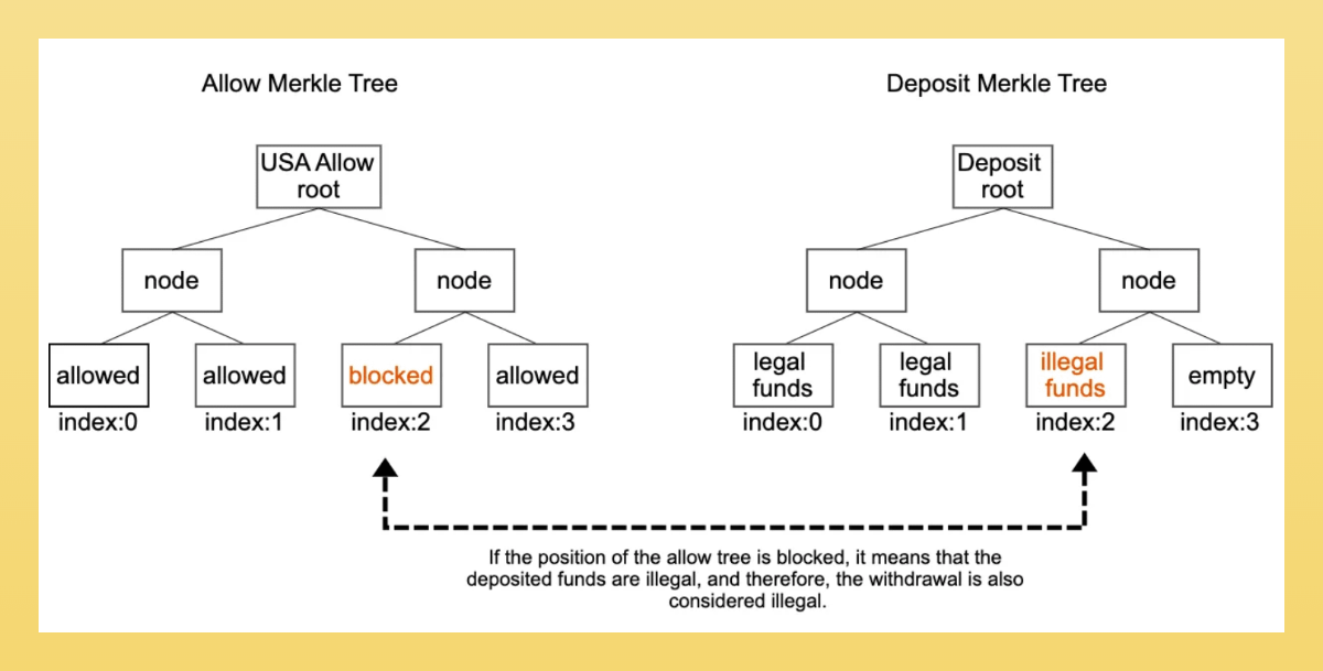 Using a self-generated or untrustworthy Allow Merkle Tree increases the likelihood of withdrawn funds coming from problematic deposits, which can be tracked by the government.