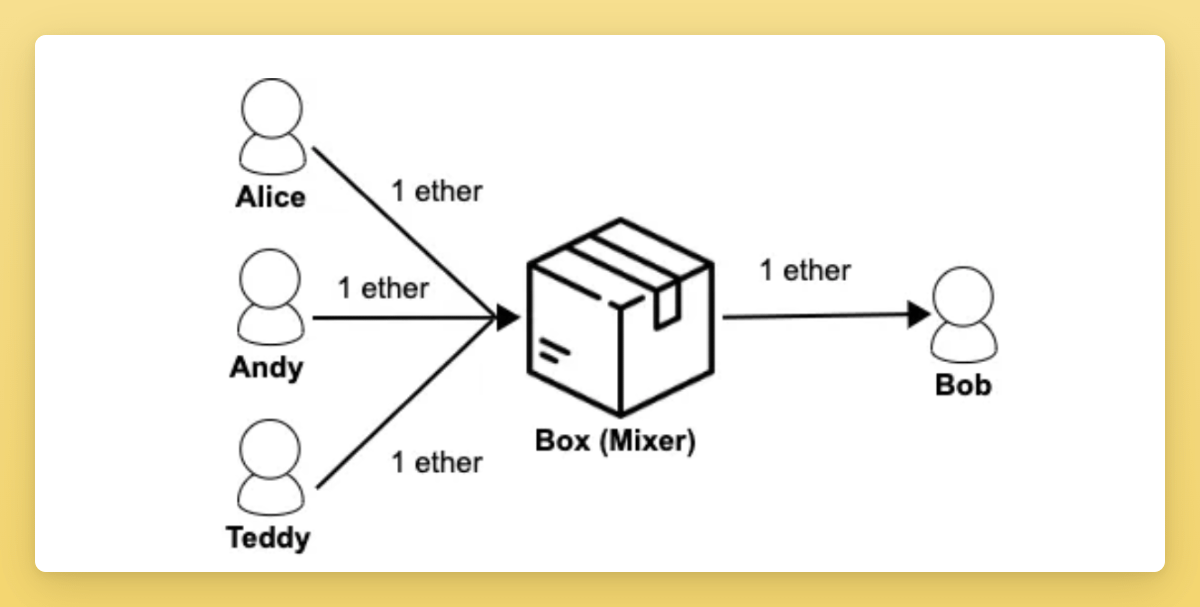 By pooling all incoming funds into a large pot, when a withdrawal is made, it's only known that the funds came from this crypto mixer.