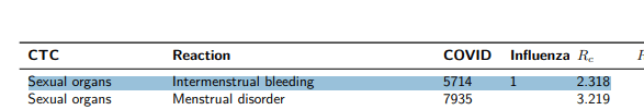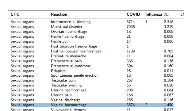 3/n "Par exemple, alors que 1229 et 157 cas de thrombose du sinus veineux cérébral ont été signalés à ce jour après la vaccination par le COVID-19, aucun cas n'a été signalé pour les vaccins antigrippaux dans EudraVigilance et le VAERS, respectivement." Par exemple.