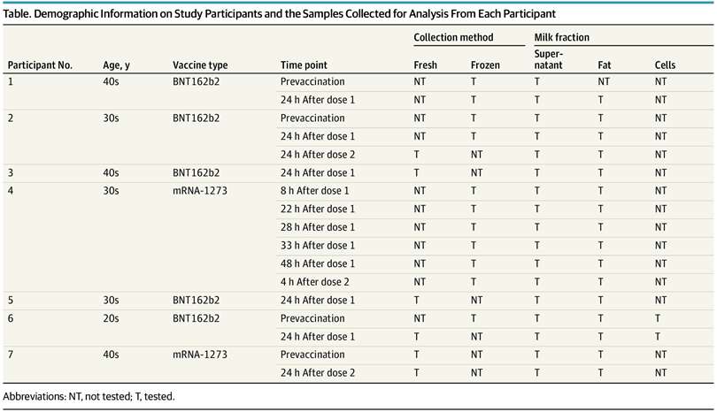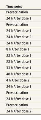 Les rares échantillons collectés pour Golan l'ont toujours été au moins 24h après la vaccination, sauf pour 1 seule des participantes (4h, 8h, 22h).