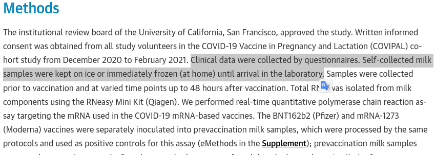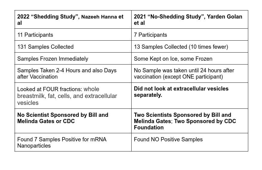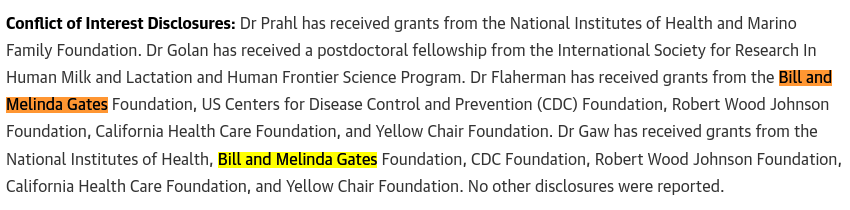 Comparons. S'agissant des liens d'intérêts, on note que deux des auteurs de l'équipe qui n'avait pas détecté d'ARNm dans le lait maternel ont déclaré avoir reçu des fonds de la Bill & Melinda Gates Foundation, très investis dans la vaccination ARNm.