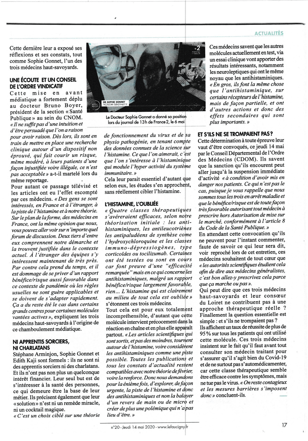 Un traitement simple, sans danger, bon marché, disponible dans toutes les pharmacies: les anti-histaminiques, qu'ils ont proposé dès février 2020, avec succès.
