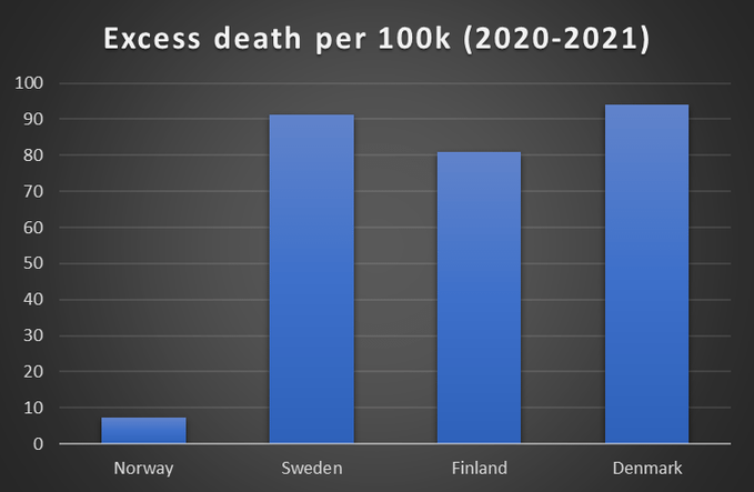 4/4 Anecdote amusante 2): la "catastrophique" Suède, victime de son "irresponsabilité", dont il fallait comparer la mortalité "avec celle de ses voisins scandinaves", s'en sort bien ici, en fait, même en comparaison régionale (pour ne pas parler de son rang au niveau européen).
