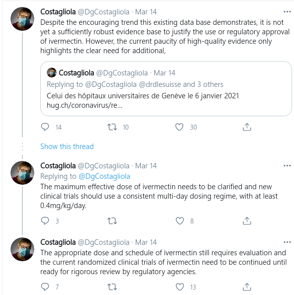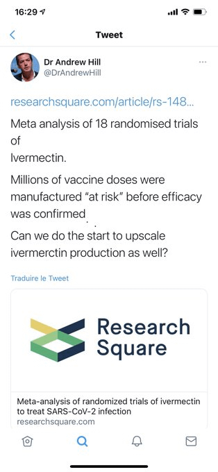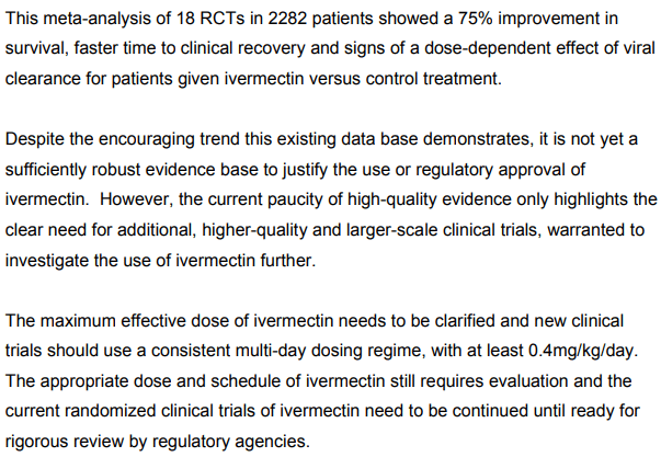 11/n Il ne s'agit ici évidemment que de soupçons, non avérés. Il faut noter que la personne en question avait cité, avec une évidente satisfaction, la conclusion d'Andrew Hill comme argument contre l'adoption de l'ivermectine, en oubliant... les guillemets: