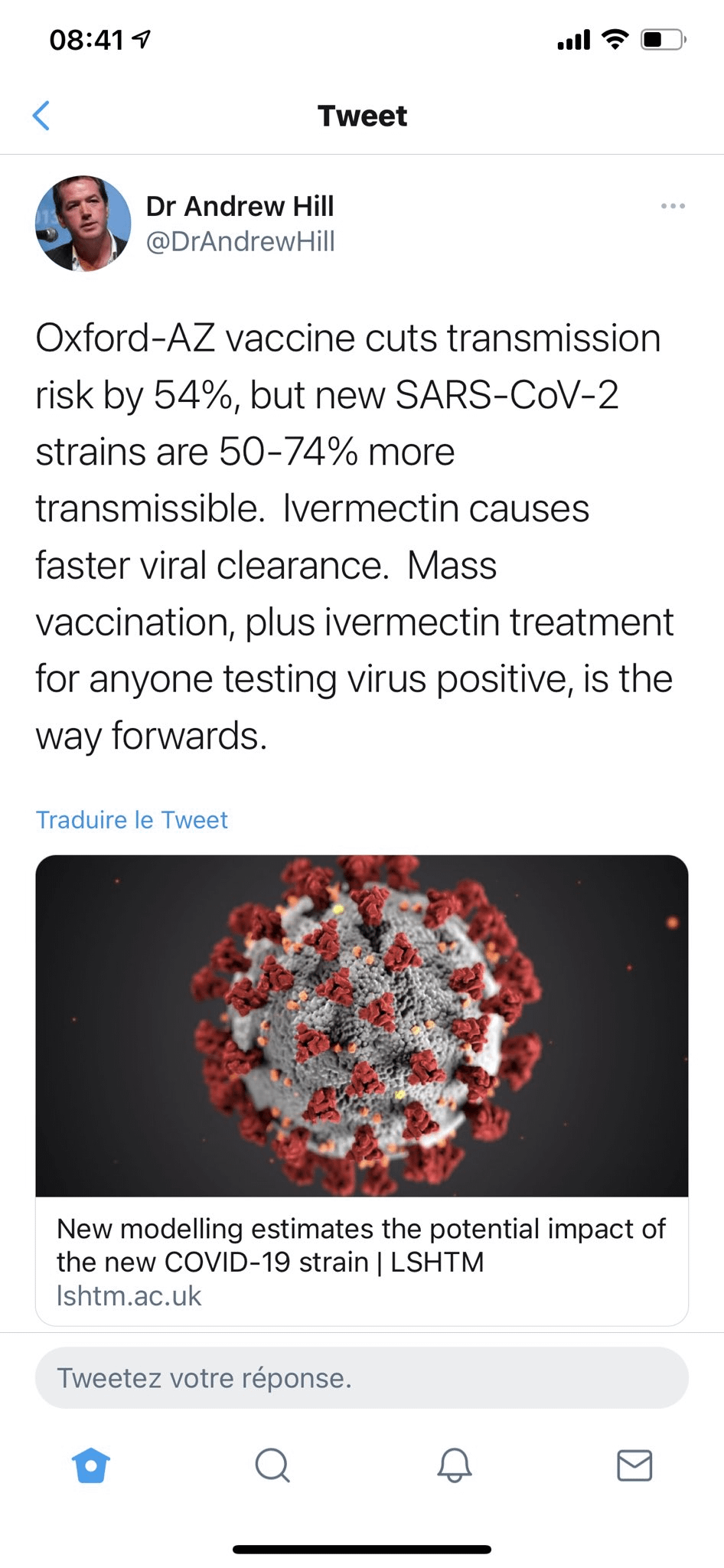 4/n D'autres témoignages de l'enthousiasme d'Andrew Hill à cette époque, et l'entier de sa présentation (il a depuis supprimé son compte twitter après avoir effacé plusieurs de ses tweets le plus enthousiastes...) odysee.com/@ivermectine-covid.ch:5/Presentation-par-le-Dr-Andrew-Hill-de-sa-meta-analyse-sur-l%27ivermectine-commanditee-par-l-OMS:8?r=Fpy696u12bVfrqzZxSaEuMgjEWBCYWWC
