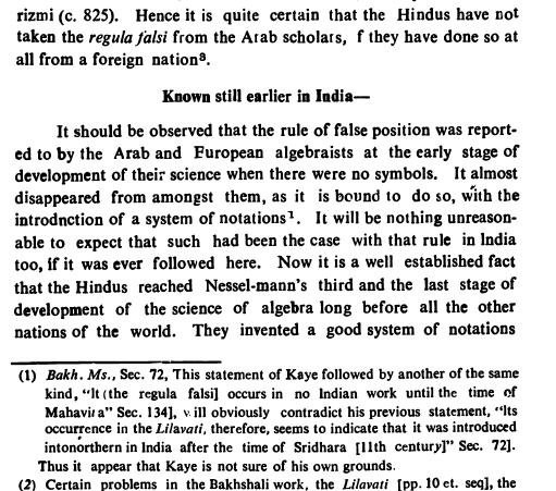 The writers asserts that Indian mathematics has reached Nessel-mann's third and the last stage of development of the science of algebra long before all the other nations of the world by inventing good system of notations