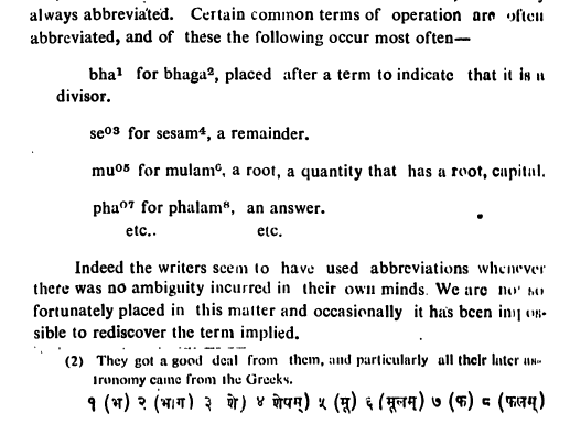 Certain operators are often abbreviated such asfor bhaga, placed after a term to indicate that it is itd ivisor.