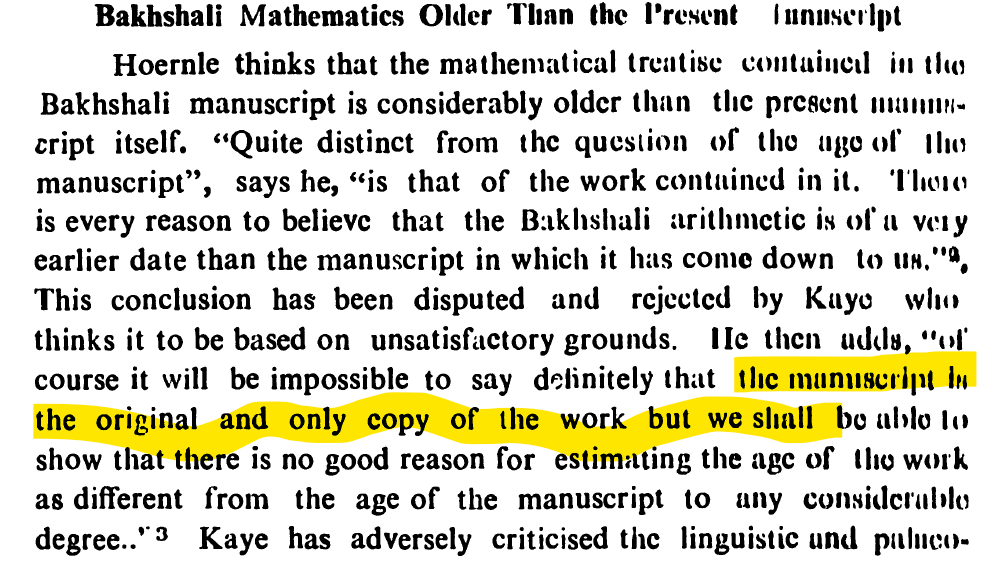 The original writer of Bakshali manuscript knew "Sumerian" (c. 4500 – c. 1900 BC) or their existence.