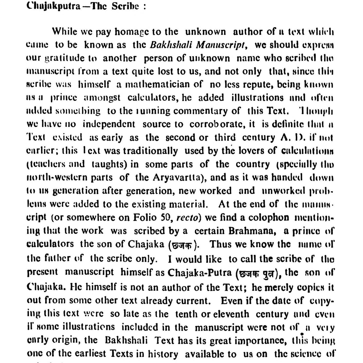 Folio 50, mention that it was scribed by a Brahmana, a prince of calculators, the son of Chajaka (चाजाका) a hindu and a great devout to #Shiva