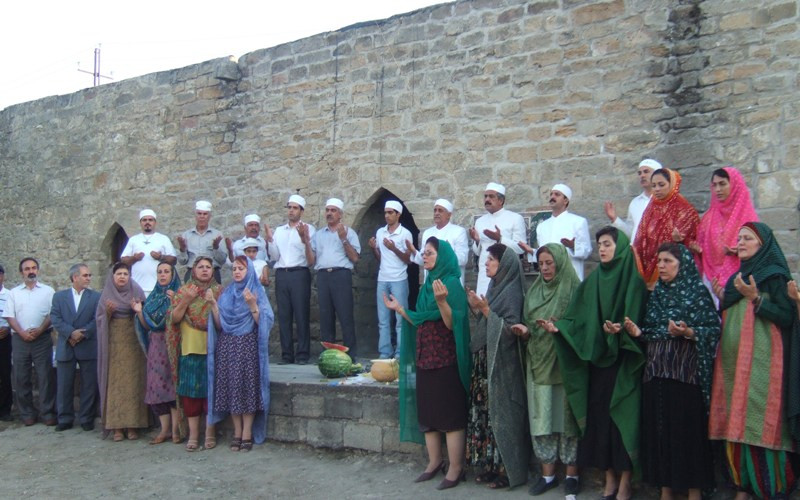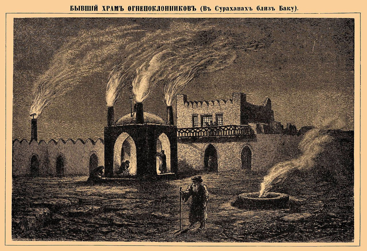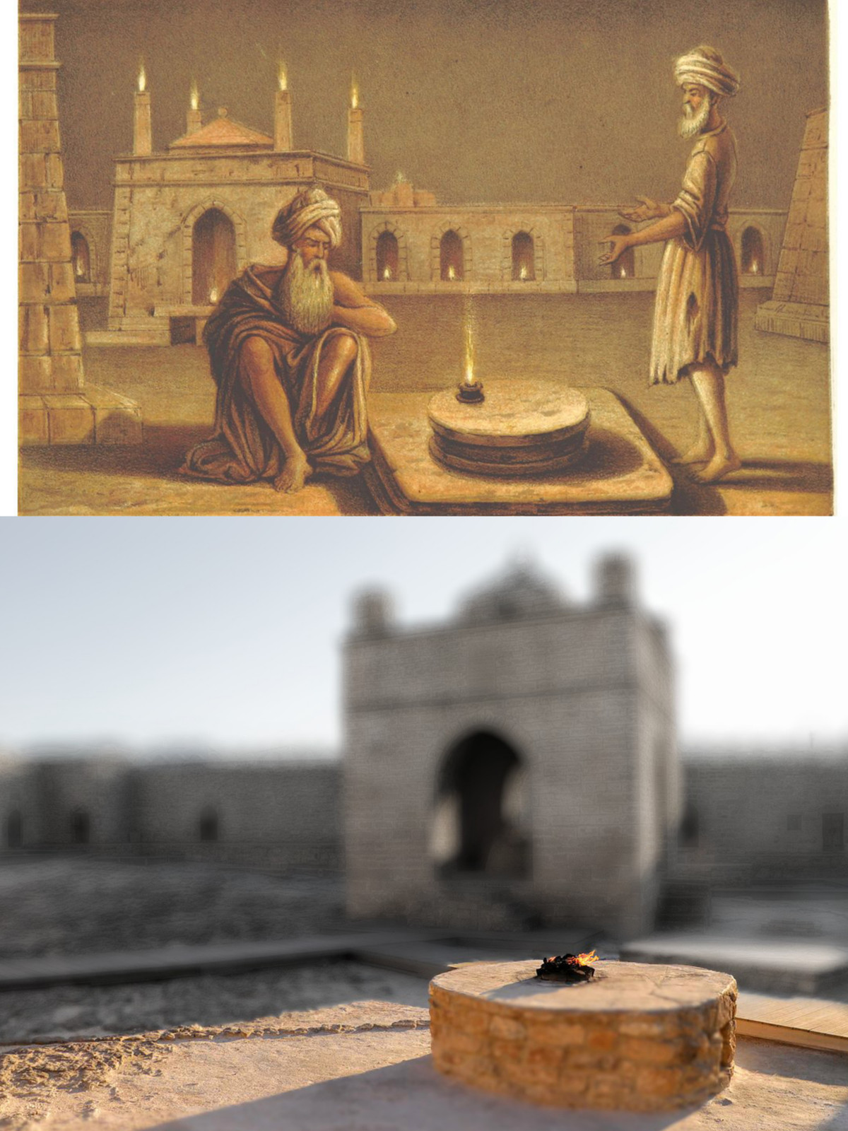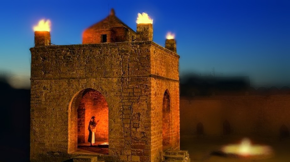 Iranian Zoroastrians praying in Ateshgah of Baku.