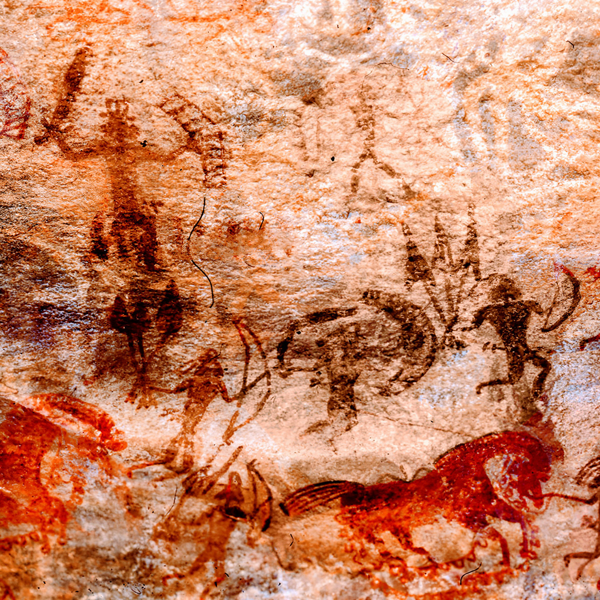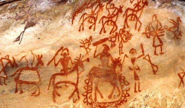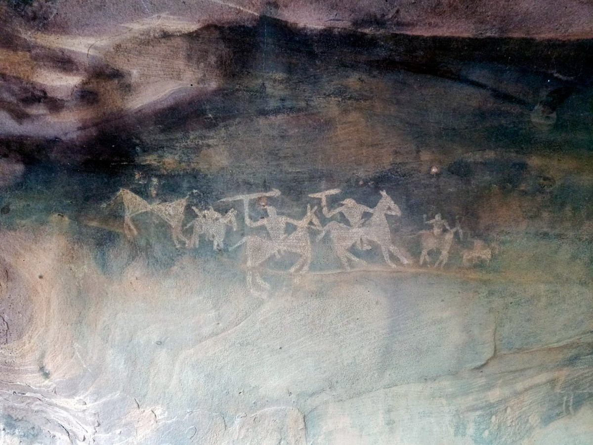Horse rock art from Chaturbhuj Nala caves Bhanpura, Pahadpur caves, Panchmadhi caves and caves from other parts of India. The caves conservatively dates between 20,000-4000 ybp