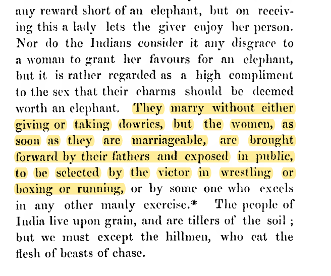 There was ๐๐จ ๐๐จ๐ฐ๐ซ๐ฒ ๐ฌ๐ฒ๐ฌ๐ญ๐๐ฆ as per Arrian (CE 86-160). As soon as girls attained age of marriage, their parents would marry them to the victors in wrestling, racing or other games. (contrast to current arranged marriage system)