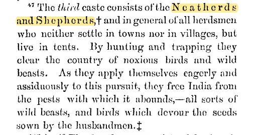 3rd cat. ๐๐๐๐ญ๐ก๐๐ซ๐๐ฌ & ๐๐ก๐๐ฉ๐ก๐๐ซ๐๐ฌ living in camps outside Towns and Villages. Their prime responsibility was to remove wild beasts, birds which devour the husbandman agri produce.