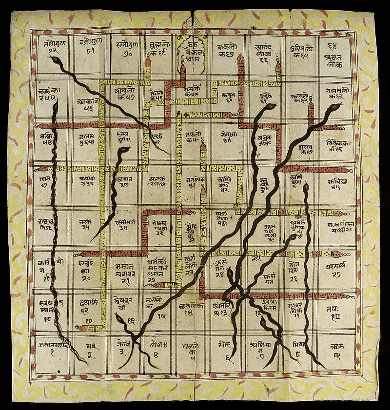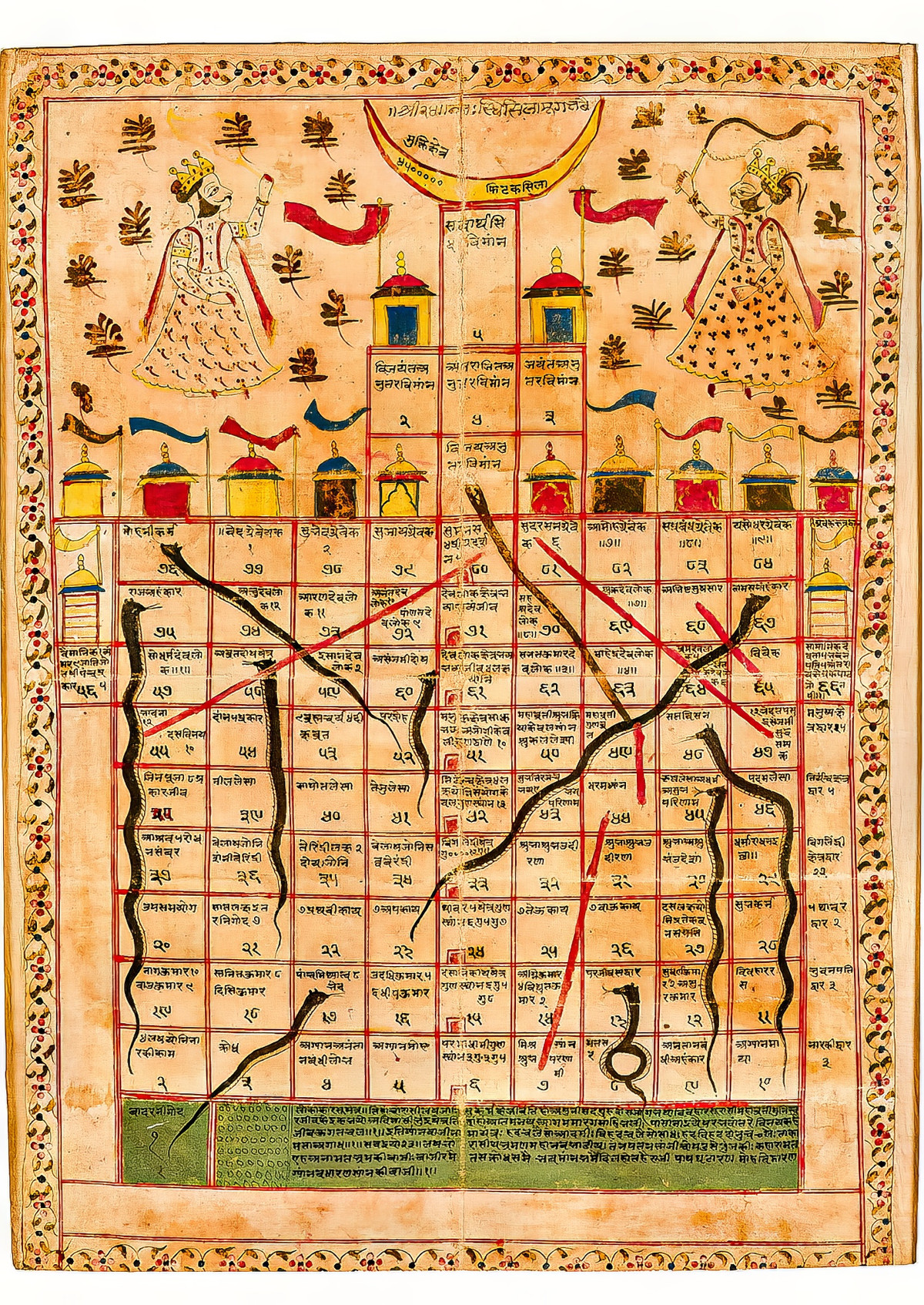 Snake & Ladders patented in 1892 by British toymaker Frederick Henry Ayres was originally invented in India and was called 'मोक्षपातम्' or 'परम् पदम्' or 'ज्ञान चौपड़' to impart Hindu principles of Moksha, righteousness, Good and Bad to the children.