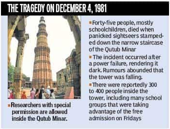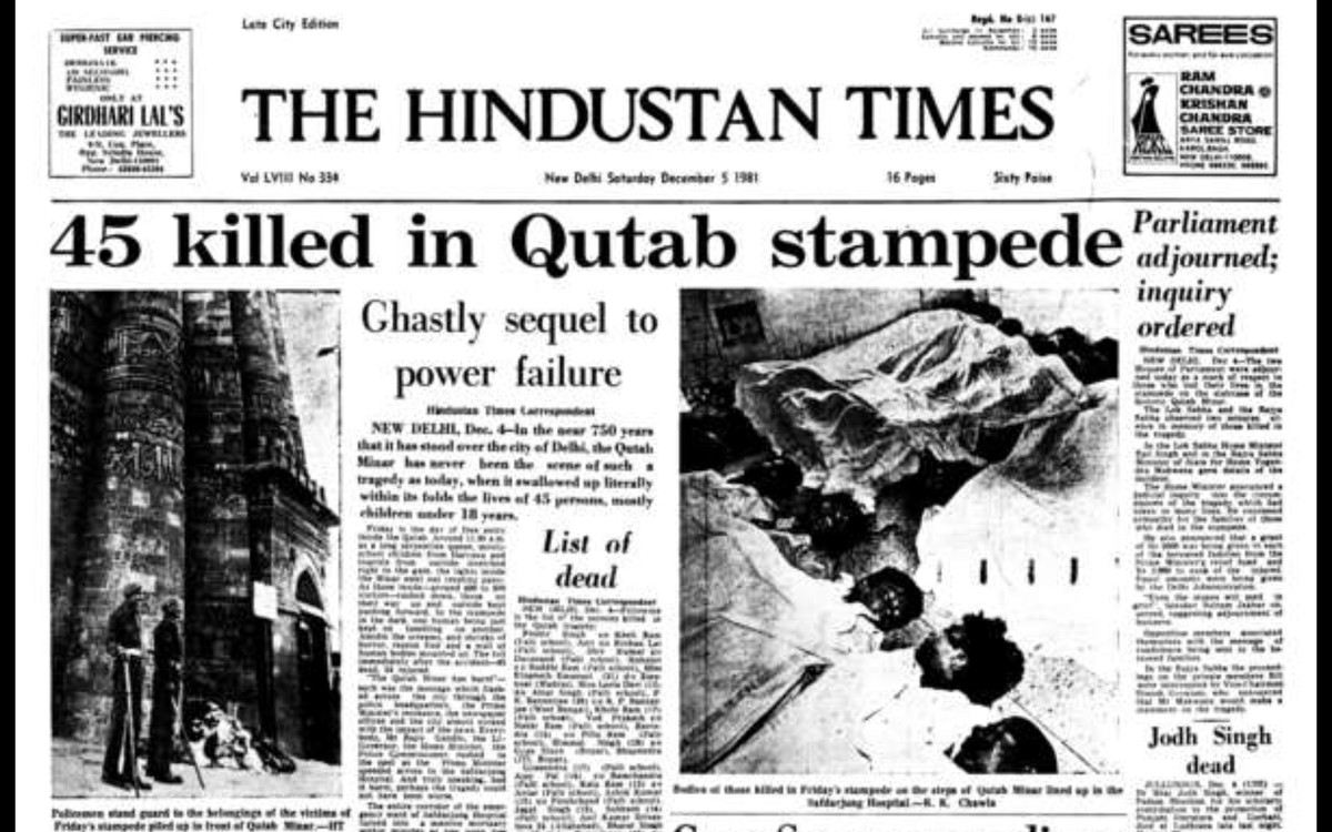 Tragedy at Qutub Minar : On December 5, 1981, 45 people died in a stampede at Qutub Minar. In 1980, I had the opportunity to climb to the first story but didn't go due to vertigo.