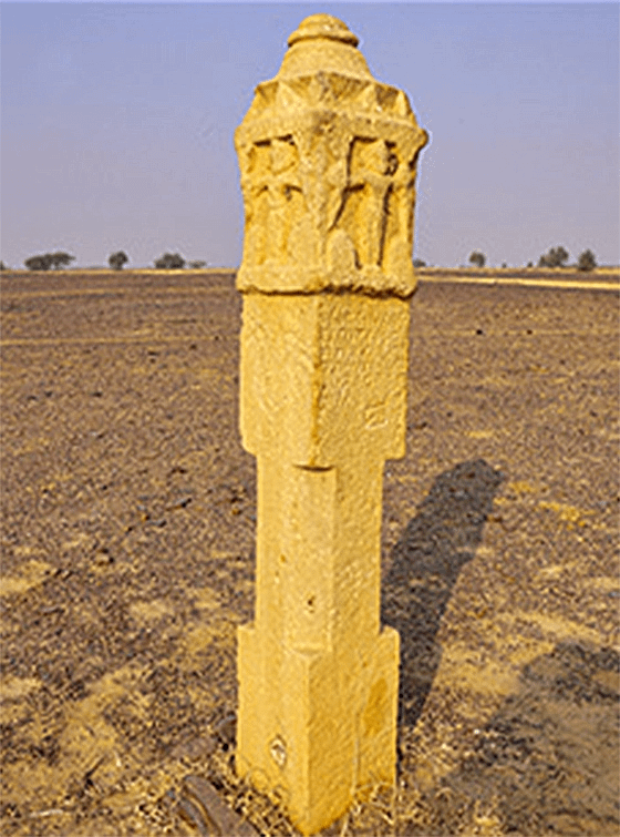 The Hindu memorial stones located around the Thar Desert geoglyphs suggest an advanced form of mathematics, design and planimetry related to the glyphs near them.
