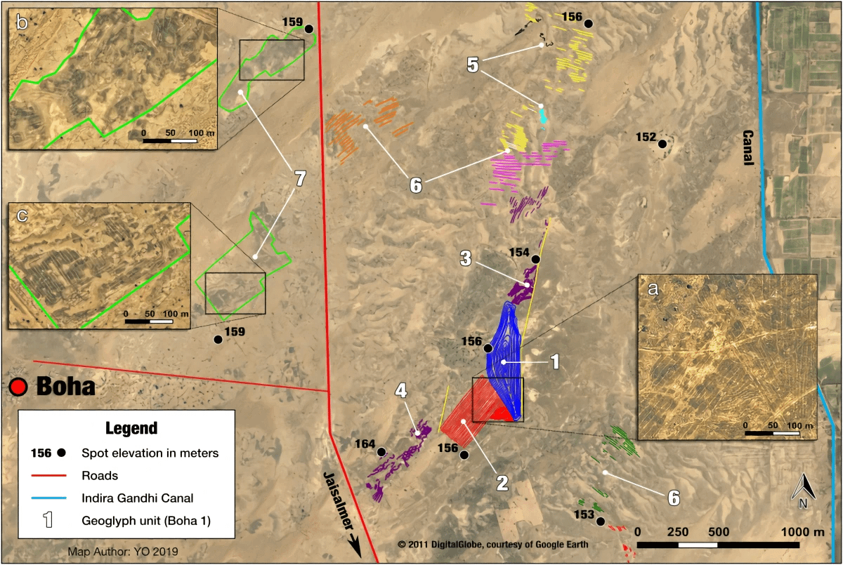Thar Desert geoglyphs are divided in 3 segments called boha 1, boha 2 boha 3