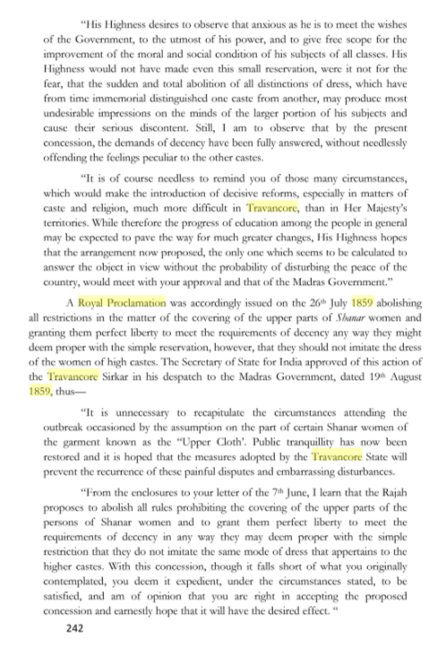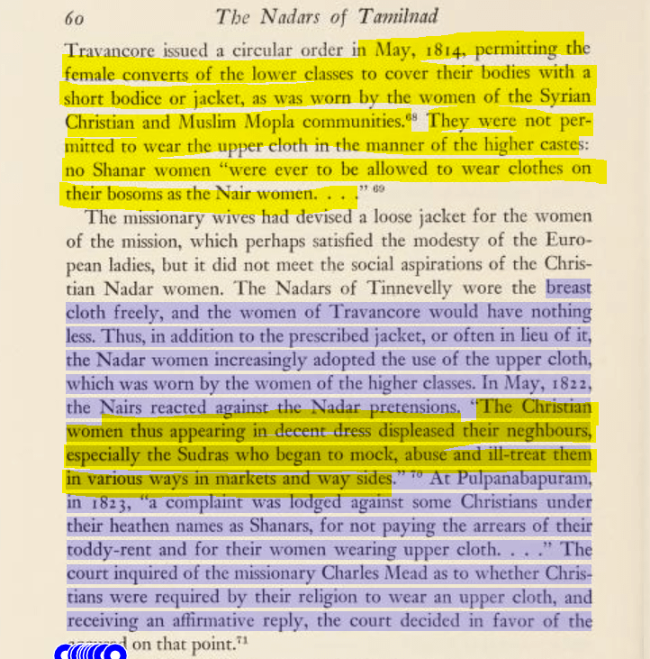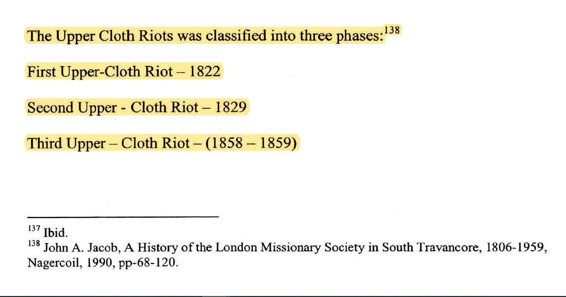 During the period British gaining power, Col Munro in 1812 and 1814 Govt of Trav. permitted some clothing to the converted unprivileged not same as syrian christians & moplahs. (UNFAIR & divisive) This triggered the UPPER CLOTH MOVEMENT
