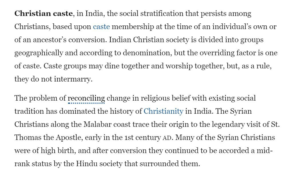 A decree from Synod allowed converted christianity to follow untouchability while it was punishable in rest of the world. (Divide with convenience?) Surprisingly, converted unprivileged to Christianity still follow caste system.