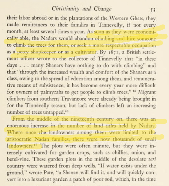 However, with conversion to Christianity by some, they got some recognition and social status. With start of NEW Tea plantation in Ceylon and Sugar factories, Nadar's started to earn and save some money to afford 'CLOTH' a luxury. Some turned land owner and few tree owners.