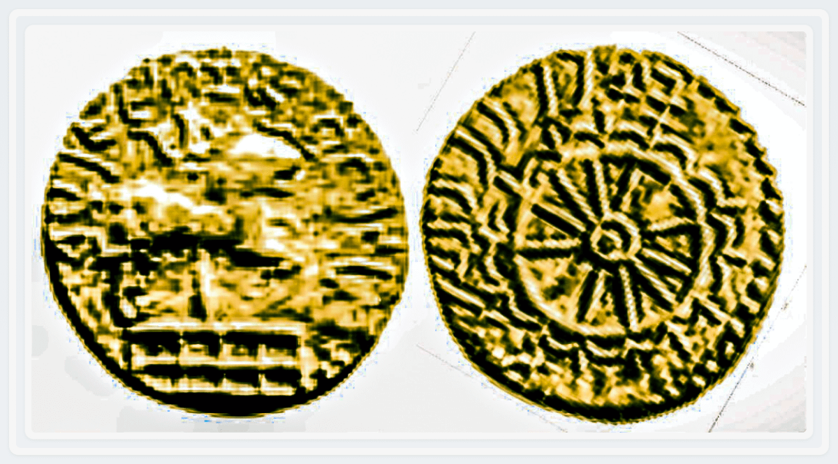 Pic2-Mauryan punch-marked coin with three deities 4th-2nd century BCE