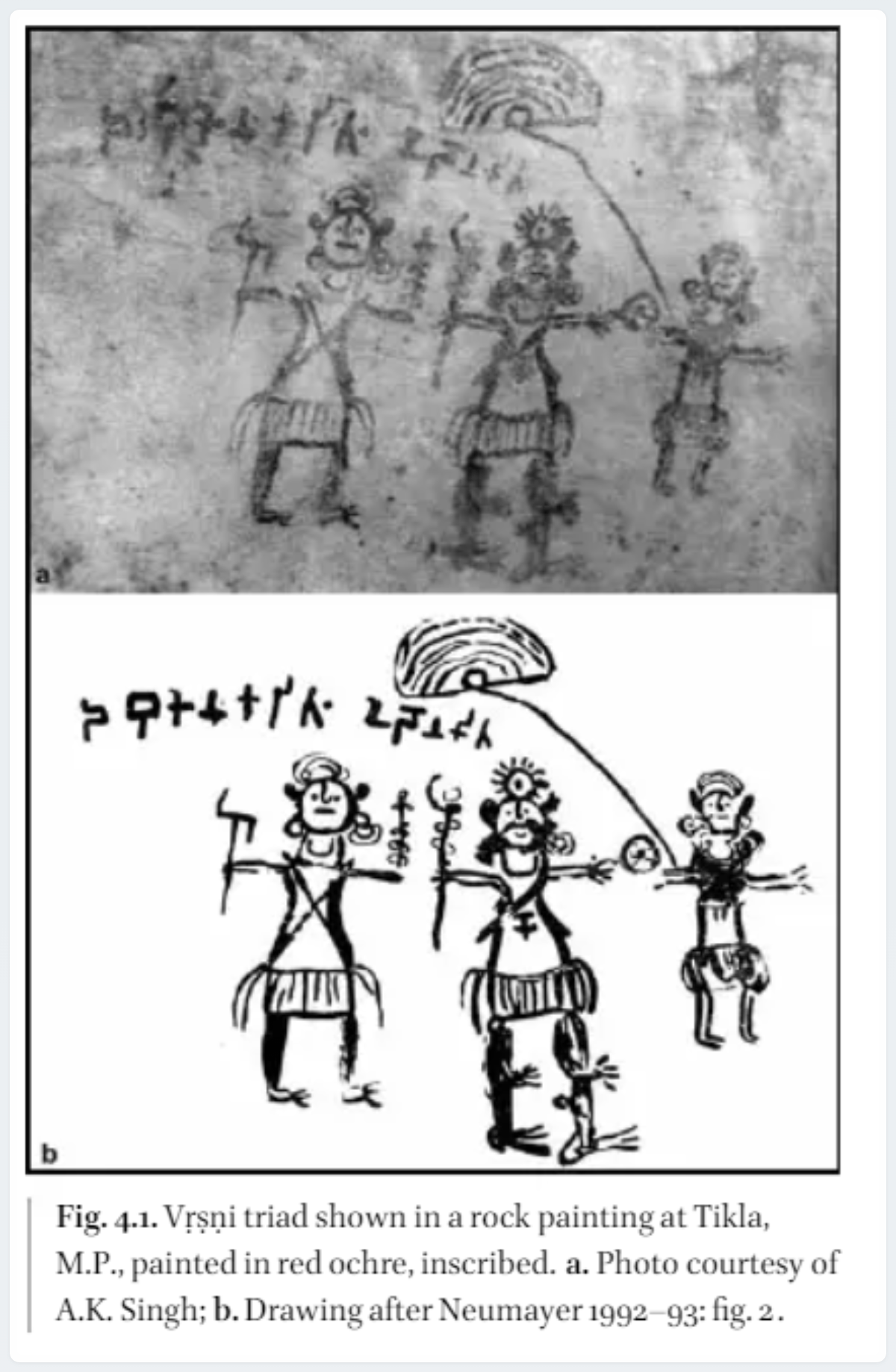 Earliest Vrsnis in Triad form appears in a rock painting at Tikla, Madhya Pradesh, 3rd - 2nd Century BCE