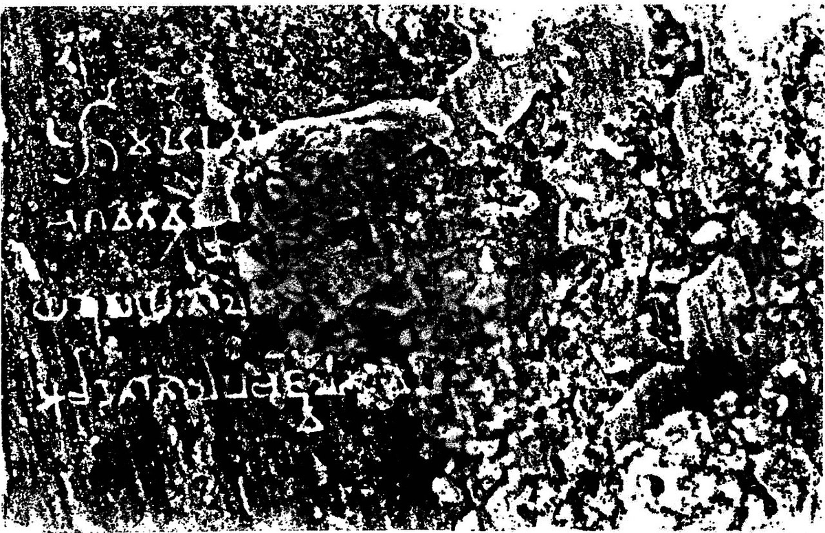 The Brahmi inscription reads dambukenakÄritaáš odanakita (ऌŕ¤ŕ¤ŹŕĽŕ¤ŕĽŕ¤¨ŕ¤ŕ¤žŕ¤°ŕ¤żŕ¤¤ŕ¤ ŕ¤ŕ¤Ąŕ¤¨ŕ¤ŕ¤żŕ¤¤ŕ¤žŕ¤)