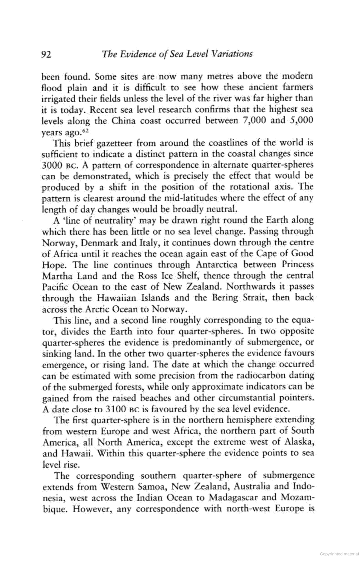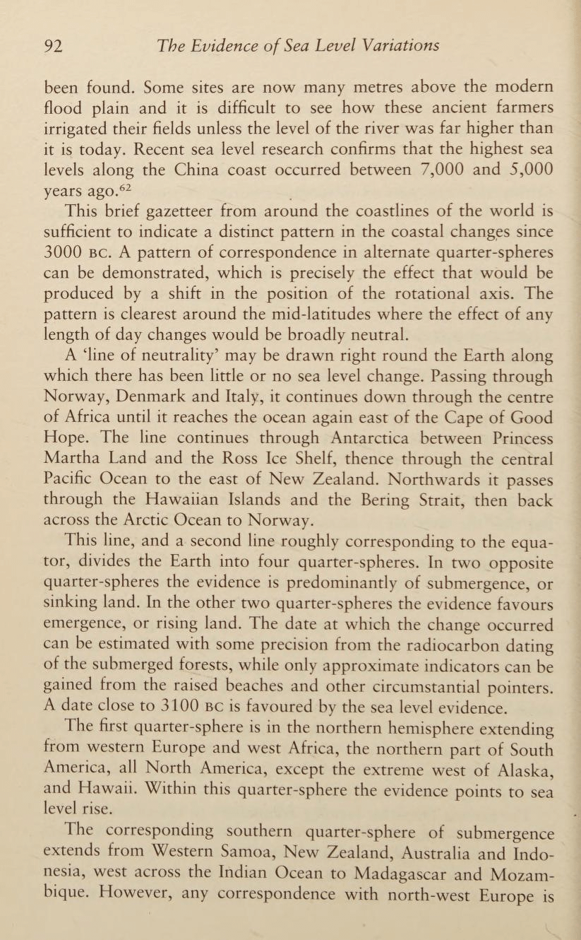 There are sea level evidences from coastlines around the world that land submerged or emerged in two alternate quadrant around BC 3100.