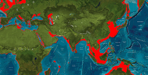Charles Darwin noted raised beaches as high as 500 meters in some places in Patagonia and Chile