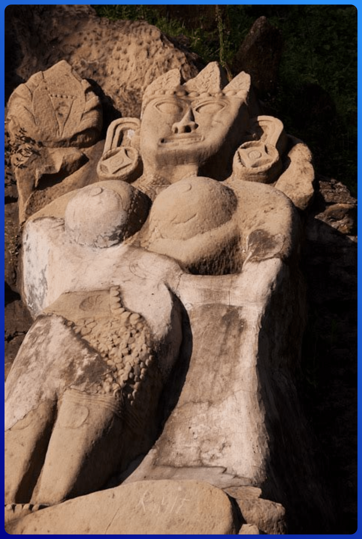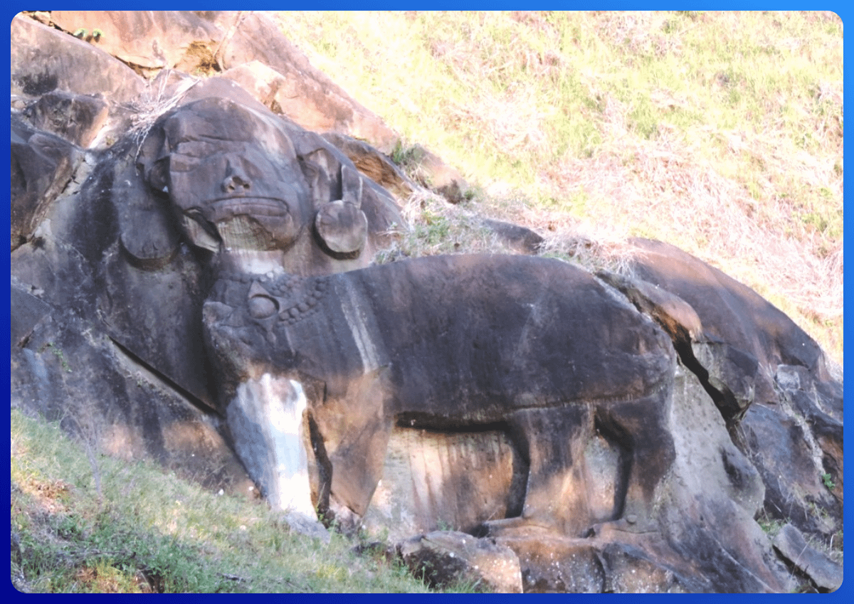 In addition three enormous images of Nandi Bull are found half buried in the ground. There are various other stone as well as rock cut images at Unakoti.
