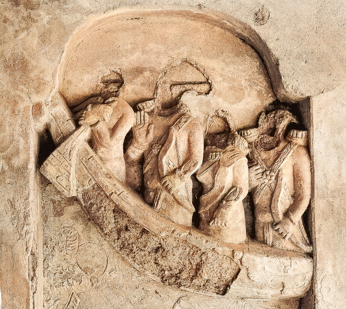 Rama, Sita and Laksmana crossing river Ganga with Kevata Vishnu Temple Apsad, Nawada, Bihar ca. 600-699 ce