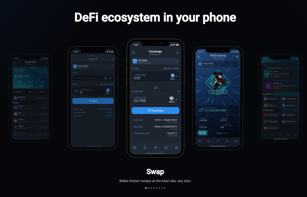 On pourra aussi citer l'app mobile, qui agit comme un wallet non-custodial et depuis laquelle vous pouvez effectuer vos swap en profitant des avantages de la plateforme. Il est même possible d'y déposer ses NFTs et d'utiliser sa CB pour réaliser des achats.