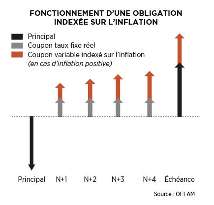 Ainsi, la rémunération du prêteur, qui correspond au taux du prêt, ne sera pas grevée par l’inflation puisque le principal ainsi que les coupons évolueront régulièrement en la suivant.