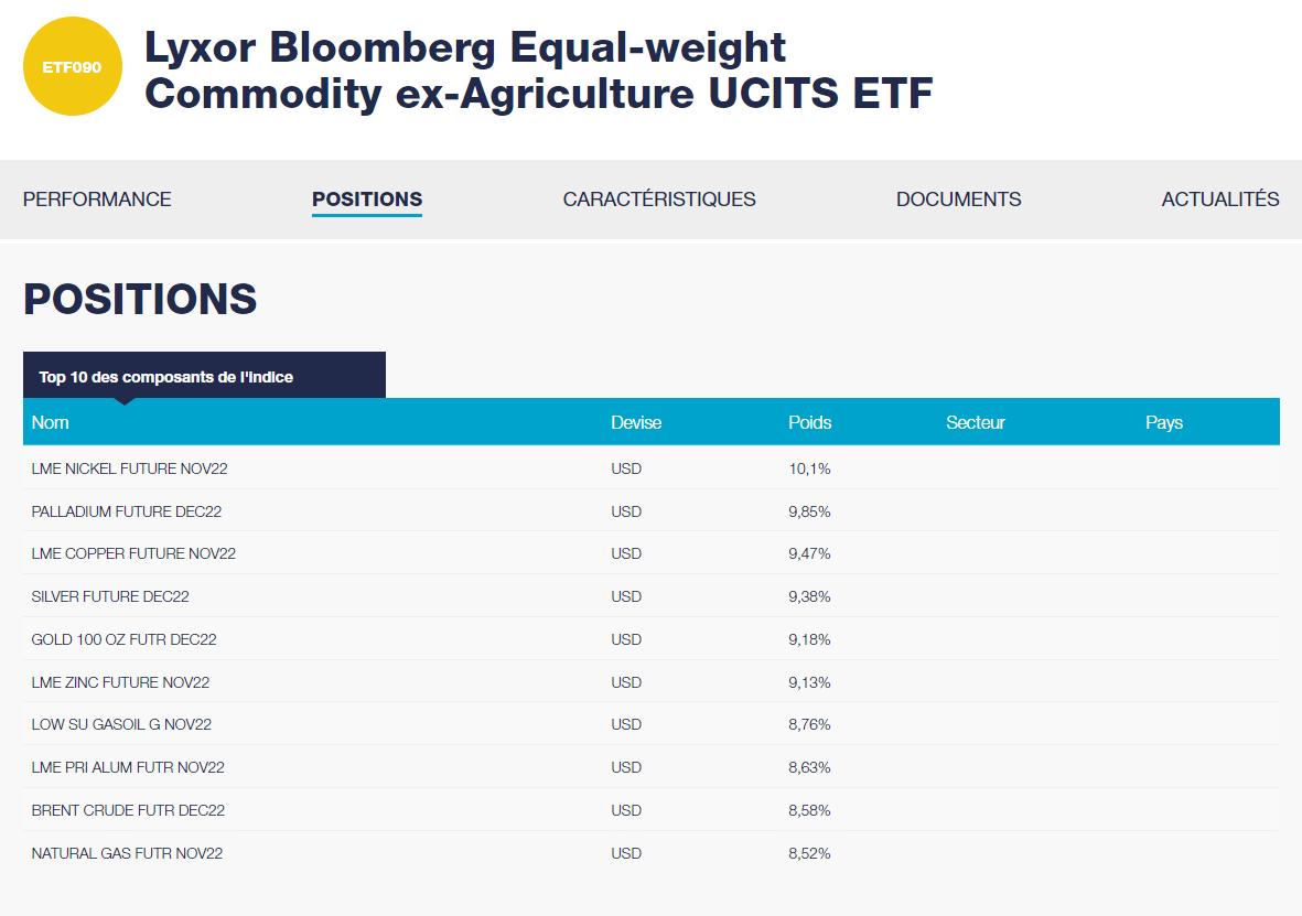 Ces ETFs sont également disponibles chez les plus gros courtiers, à vous de fouiller un peu (tapez commodities).