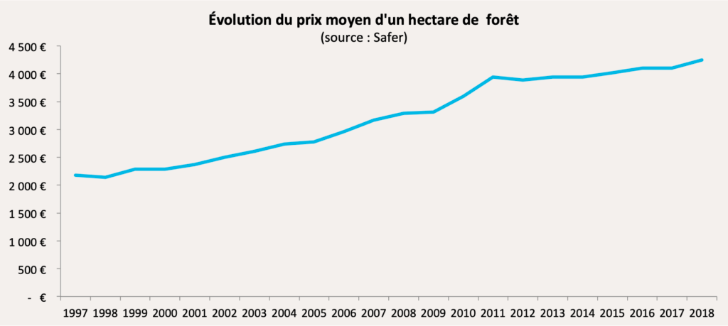 Ainsi, quâimporte les crises, les bulles et les cycles Ă©conomiques, le prix moyen de lâhectare de foret monte, de façon quasiment linĂ©aire.