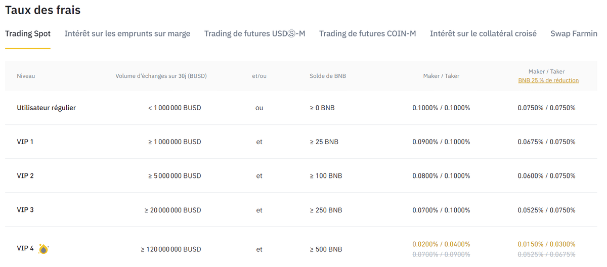 Commençons par les #crypto. Je ne vais probablement rien vous apprendre, mais vous devez privilégier les exchanges comme Binance ou FTX pour vos transactions. Leurs frais sont ridicules (0,1% généralement sur un ordre) et feront la différence sur le long terme.