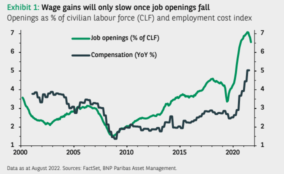👉 L'offre d'emplois est toujours supérieure à la demande, forçant les entreprises à augmenter les salaires pour attirer les employés, et donc alimentant l'inflation