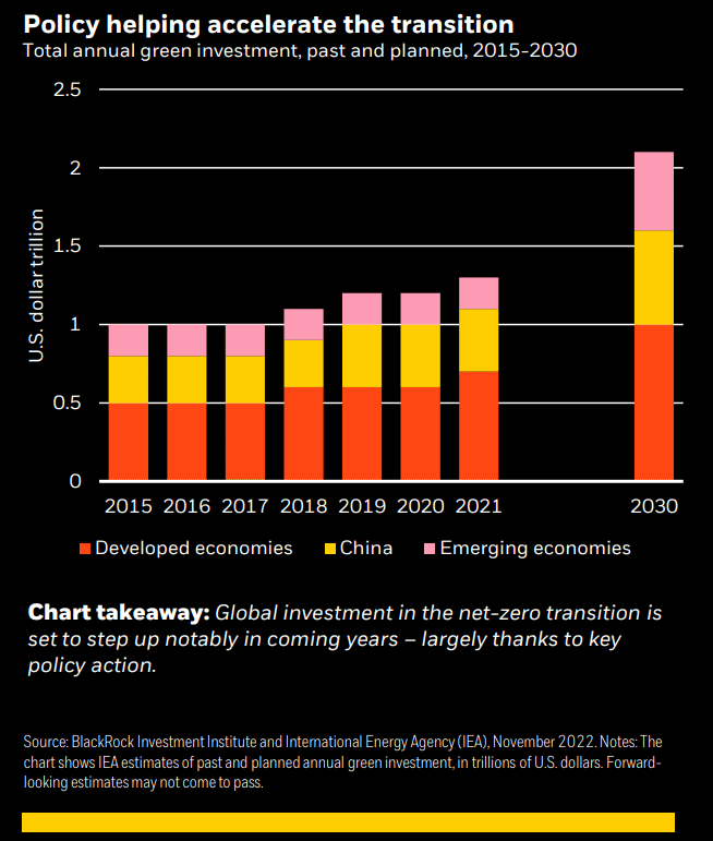 👉 Cela devrait favoriser la volatilité de l'inflation, de lourds investissements étant prévus sur le long terme ($2 trillion d'ici 2030)