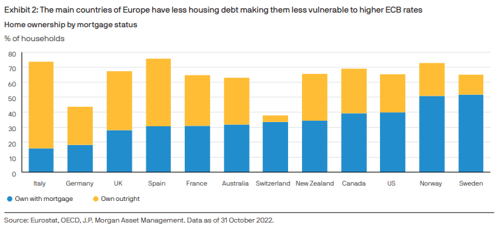👉 L'immobilier européen devrait bien tenir la hausse des taux de l'ECB, une bonne proportion de propriétaires n'ayant pas/plus de dettes sur leurs biens